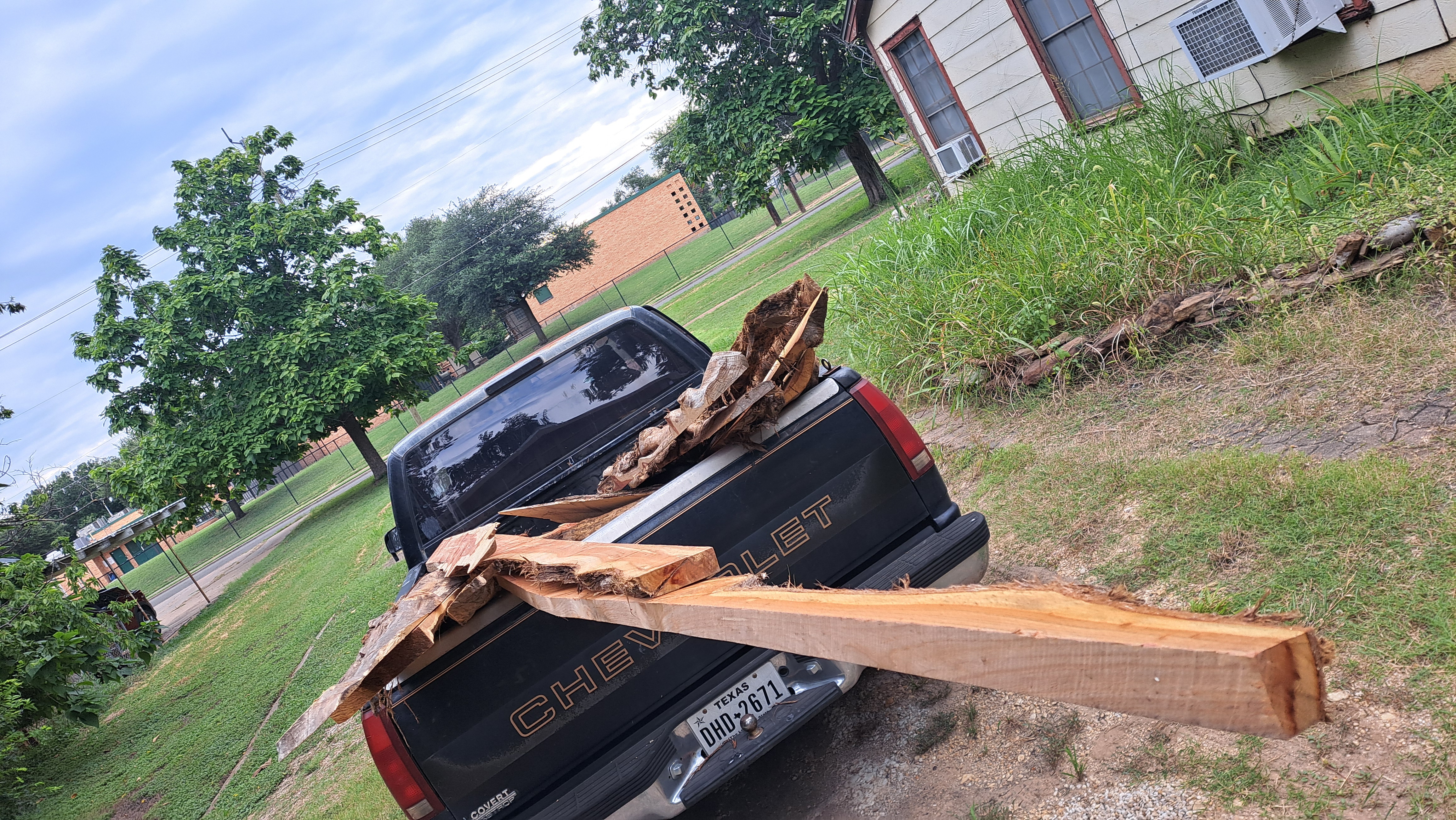 Since that picture I've gotten several more of what he calls "first cut" off the trees. Those are mostly bark on the original outside of the tree with a flat face. Mostly cedar but think there is also some oak or maybe pecan.