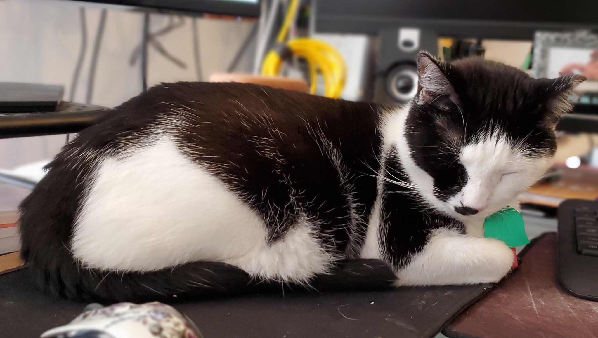 My daughter's cat who recently passed away. This picture is a little challenging being a black and white cat but I will get it figured out!